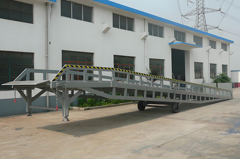 叉車登車橋-移動式裝卸平臺是實現貨物快速裝卸的專用輔助設備,調節月臺、建筑物地面與車廂之間的高度差。登車橋前端的可翻轉搭接扳在裝卸貨物時始終緊貼車廂。登車橋的角度調節功能使使貨車與建筑物地面之間架起一座橋梁,各種搬運車可順利通過登車橋,在建筑物地面與車廂間運送貨物。并且,只需一個操作工人作業,即可實現貨物的快速裝卸。它使企業減少大量勞力,提高工作效率,獲取更大經濟效益.是現代企業生產,提高物料流通速度之不二選擇。
