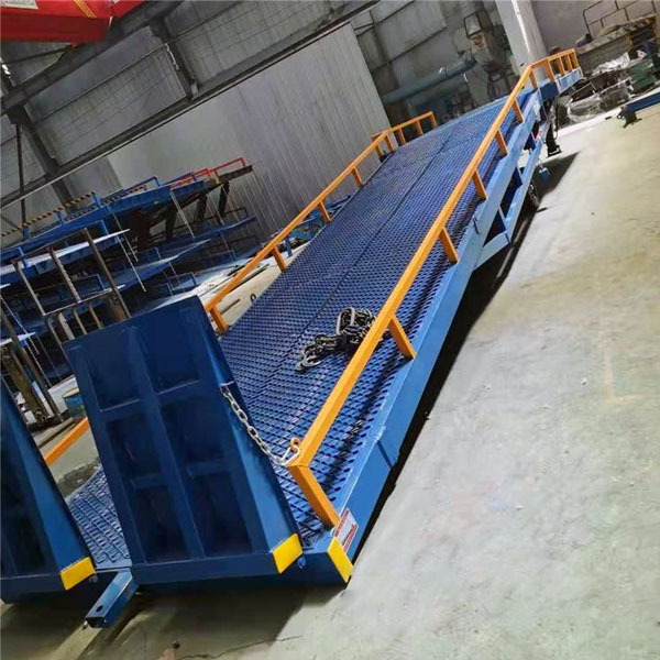 移動式機(jī)械登車橋的特點: 產(chǎn)品應(yīng)用于碼頭、站臺、倉庫等地。可根據(jù)用戶的不同需要,在外形尺寸,承受載荷等方面作特殊設(shè)計。登車橋安裝在貨臺的側(cè)面,與貨臺地面和側(cè)面齊平。登車橋的橋板可上、下傾斜,其外端可高出或低于貨臺平面,使之與車廂等高。